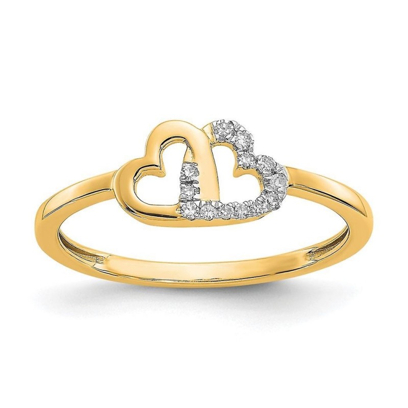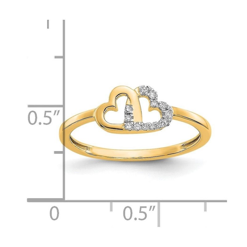 10k 2mm Diamond Double Heart Ring - Size 7.00 - 1.1 Grams - Diamond Weight 0.06 Carat in 10k Yellow Gold - - Gift Ready Jewelry Box Included - Band Width: 2 mm - Width of Item: 2 mm - Finish: Polished - ::: ::: [ Care & Handling: Diamond ] - Clean with warm soapy water and a soft brush or cloth. :::